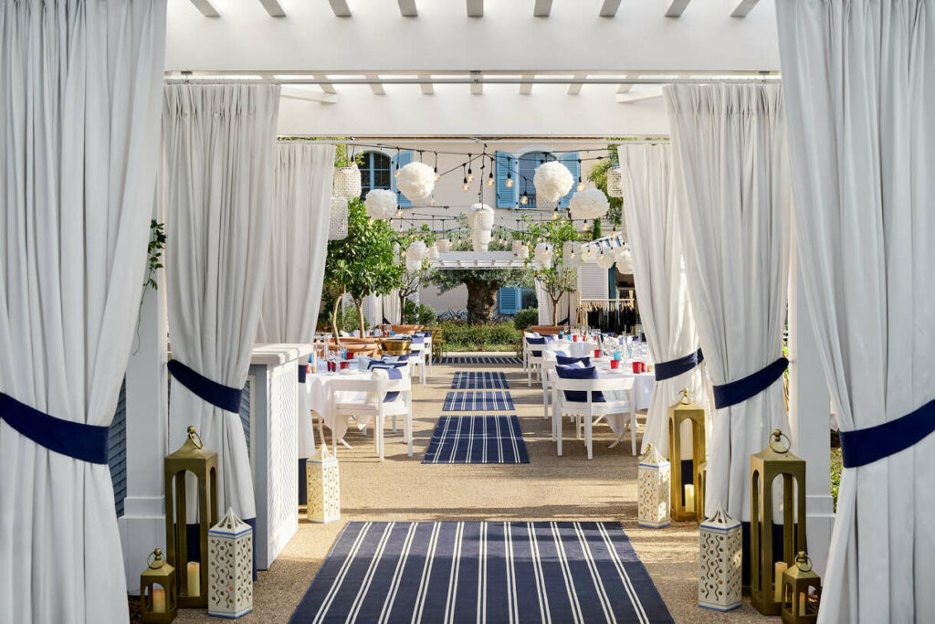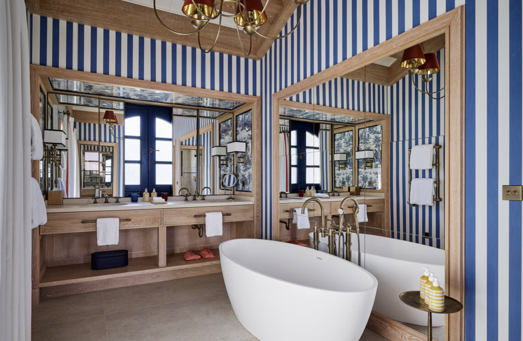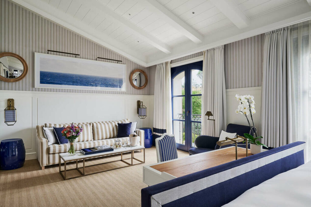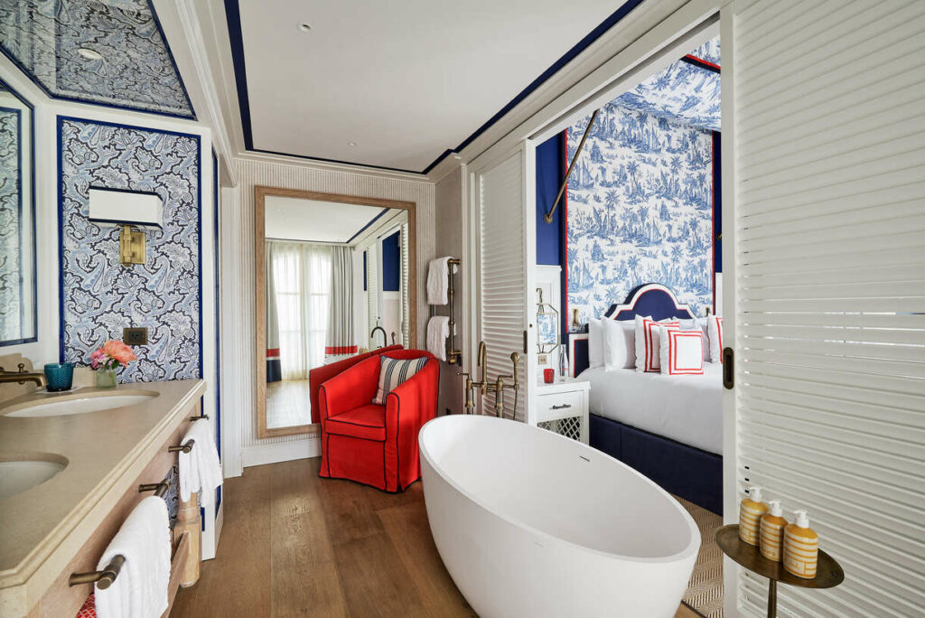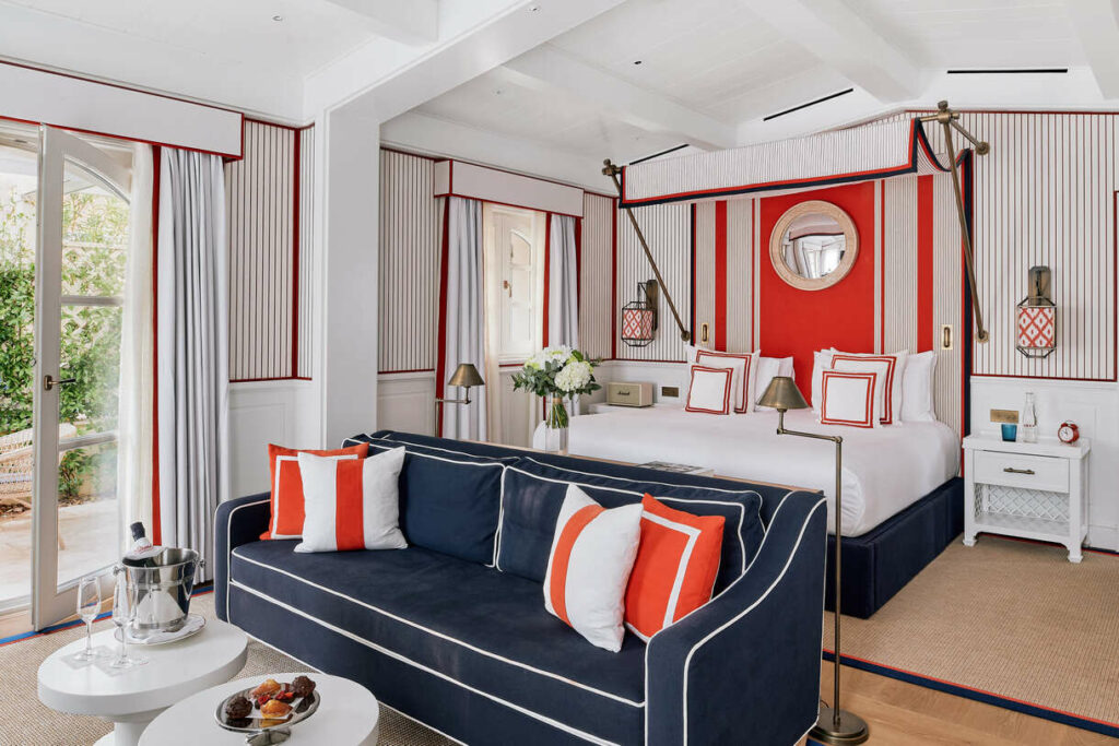 Installé au cœur d’un jardin méditerranéen luxuriant, l’établissement déploie une architecture inspirée des villas provençales, sublimée par les intérieurs signés Luis Bustamante, mêlant influences nautiques, artisanat local et touches contemporaines.