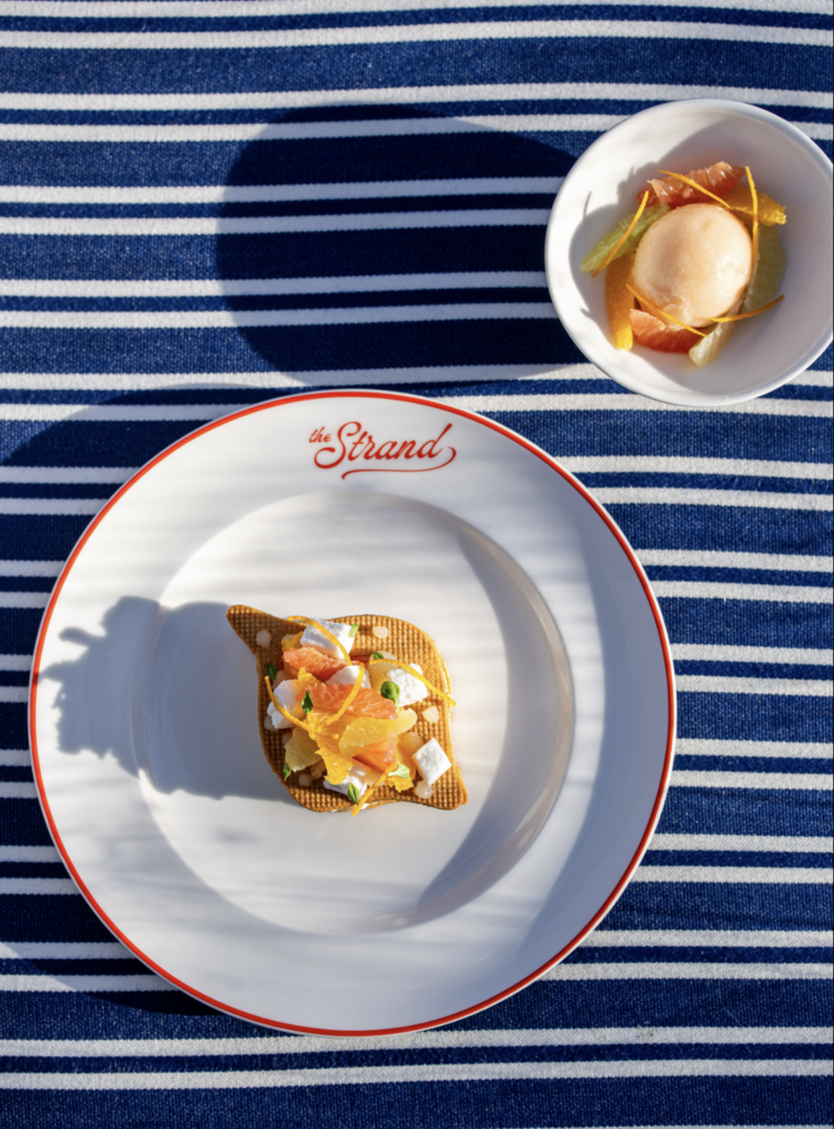 La collection AREV insuffle une nouvelle vie à The Strand, adresse emblématique de Saint-Tropez. Sous le direction des chefs exécutifs Rocco Seminara et Manon Santini, le menu se veut à la fois créatif et authentique, réinterprétant avec finesse les grands classiques de la région. La cuisine du Strand se distingue par sa fraîcheur, sa légèreté et son originalité. Élaboré à partir d’ingrédients locaux et de produits de la mer pêchés quotidiennement en Méditerranée, le menu met à l’honneur des recettes classiques traditionnelles sublimées par des techniques contemporaines. Chaque produit est choisi avec soin, en privilégiant les producteurs et agriculteurs locaux. Les pêcheurs du village apportent chaque jour leur prise directement dans les cuisines du Strand, où elle travaillée avec précision et savoir-faire par l’équipe.