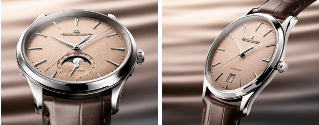 Jaeger-LeCoultre présente deux éditions limitées des montres Master Ultra Thin Date et Master Ultra Thin Moon qui inaugurent des cadrans grainés inédits, déclinés dans un coloris délicatement cuivré. Contrastant avec l’éclat froid des boîtes en acier inoxydable poli, leur texture subtile et leur nuance chaleureuse donnent un nouveau souffle à l’esthétique traditionnelle et à la virtuosité technique qui ont fait la renommée de la collection.