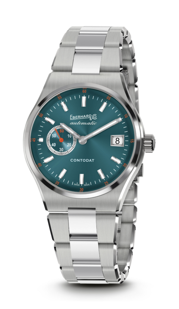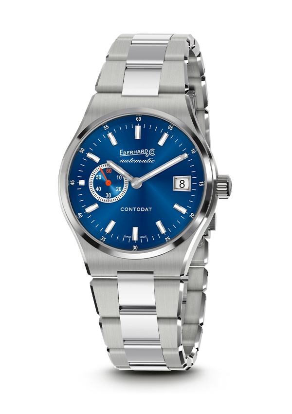 Inspiré d’une montre Eberhard & Co. des années 70, qui a défié l’arrivée du quartz, Contodat – proposé en version Chronographe et Automatique – allie des caractéristiques sportives à un design intemporel et une touche de couleur. Animé par un mouvement mécanique automatique, il représente un symbole de dévouement à l’horlogerie traditionnelle. Doté d’un bracelet intégré avec une fermeture 2CLICK et d’un boîtier aux dimensions compactes, Contodat incarne l’esprit innovant de la Maison tout en restant fidèle à la tradition.