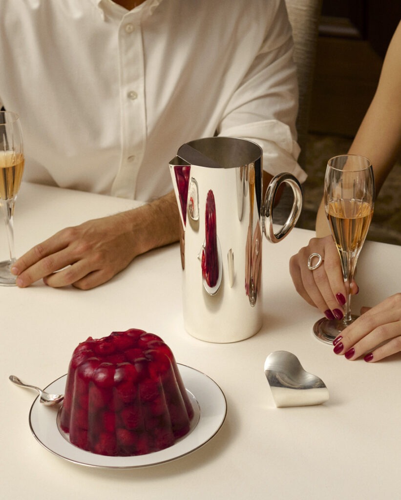Chez Christofle, les cadeaux sont choisis avec intention : les cadres photos Graphik ou America pour préserver un souvenir, le plateau Graphik pour célébrer le moment partagé ou les créations de la collection Vertigo. Imaginée par Andrée Putman, la collection Vertigo joue avec les lignes, les pleins et les vides, et accompagne les rituels du quotidien comme les instants plus intimes. Déclinée sur les arts de la table, le bar, la décoration et le bijou, elle traverse les styles et les générations. Autour d’un dîner à deux, les flambeaux à un, deux ou trois anneaux ponctuent la table d’une lumière subtile, tandis que le broc à eau et le seau à champagne affirment leur présence sculpturale et que la bague Idole en argent massif habille la finesse d’une main…