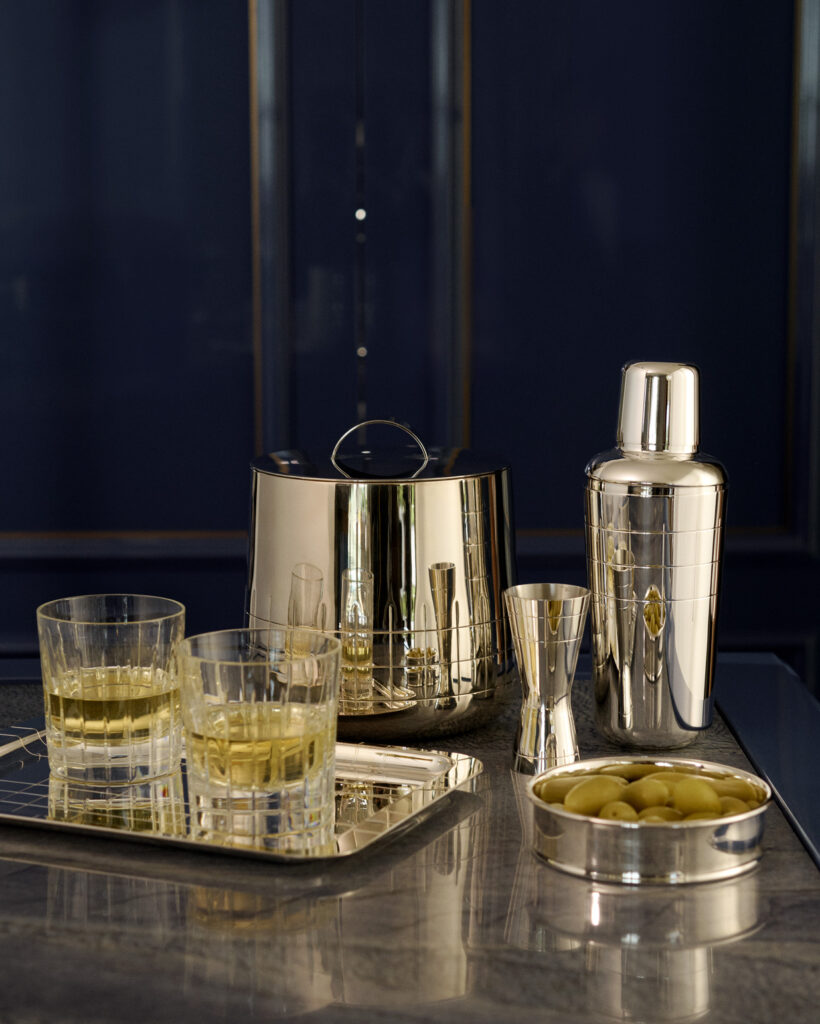 Pour élever chaque moment de la journée en rituel. Avec Graphik, le studio Christofle signe une collection au décor géométrique structuré. Créée en 2015, elle déploie son esthétique contemporaine dans un univers dédié au bar et à la décoration, où chaque pièce accompagne l’art de la mixologie. Seau à glace isotherme, shaker et jigger, plateaux de présentation : une gamme pensée pour le rituel du cocktail.