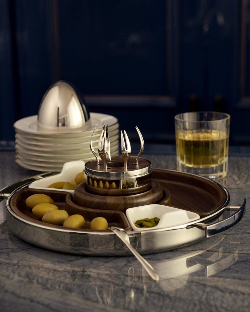 Le cadre photo Graphik prolonge cette écriture architecturée. Un objet de design qui met en valeur l’image avec la même rigueur formelle. Pour accompagner l’apéritif, le MOOD Yummy accueille en son écrin métallique six fourchettes à cocktail. Idéal pour les bouchées individuelles, sucrées comme salées, il prolonge l’art de recevoir avec une convivialité contemporaine.