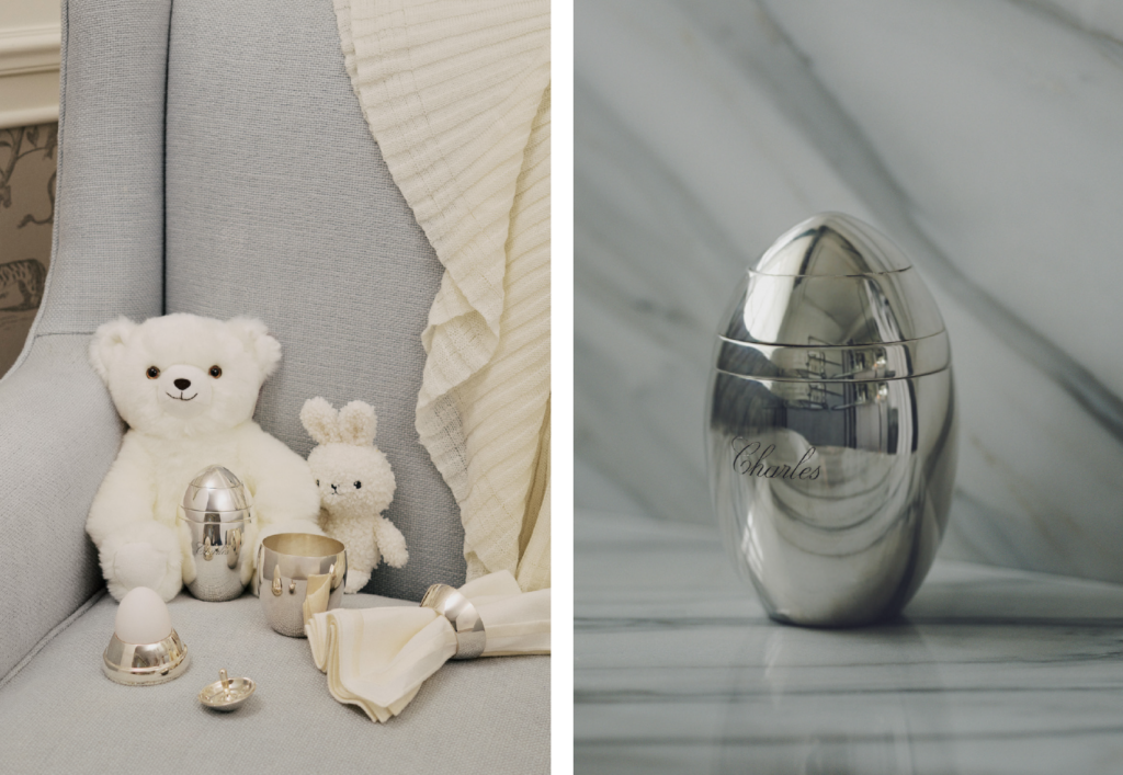 Christofle imagine des collections spécifiquement dédiées à l’enfance, déclinées dans des motifs classiques, ou dans des lignes plus ludiques et narratives, comme Charlier Bear. La timbale en argent, le rond de serviette ou les premiers couverts comptent parmi ces pièces emblématiques.