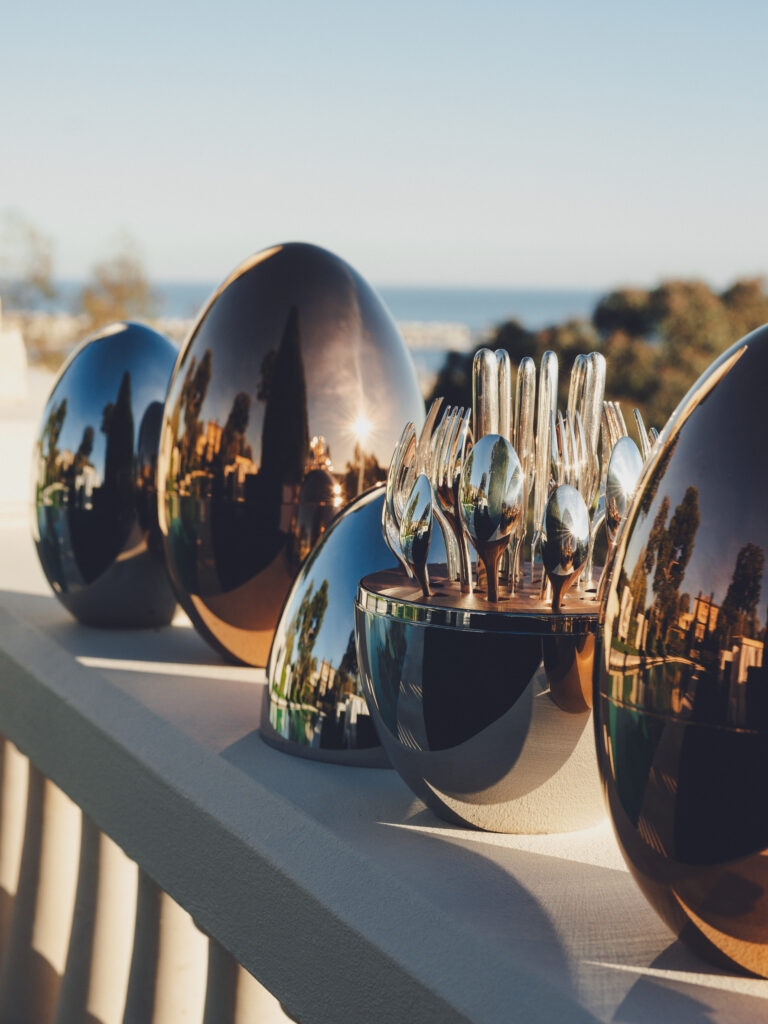 Autre signature de la Maison, les services de la collection MOOD by Christofle sont autant de cadeaux iconiques et contemporains. Leur écrin ovoïde et brillant, entre design, décoration et fonction, abrite 24 pièces de couverts et réinvente l’art de recevoir pour une table plus libre, plus spontanée, affranchie des codes traditionnels.