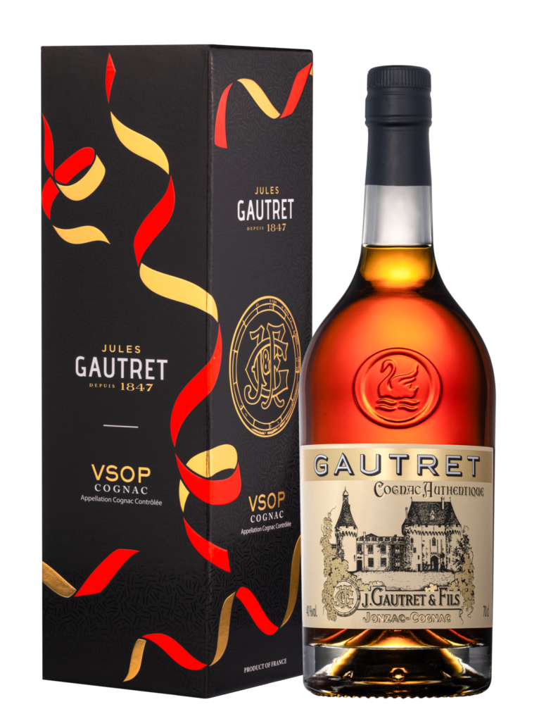 Jules Gautret VS Grâce au savoir-faire transmis au fil des années et aux meilleurs terroirs de la région, le cognac Jules Gautret VS est distillé et vieilli sur place dans les chais Jules Gautret. Le maître de chai respecte les traditions du métier pour garantir à ce cognac un moelleux unique, des notes florales, des arômes de vanille, de poire et de pêche blanche. 22,90 euros – GMS
