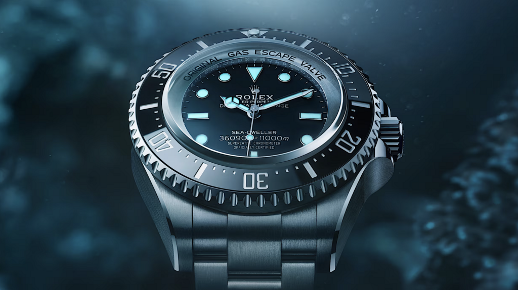 Garantie étanche jusqu’à la profondeur abyssale de 11 000 mètres, la Deepsea Challenge réaffirme la légitimité de Rolex en tant que marque pionnière dans le domaine des montres pour la plongée à grande profondeur et son expertise en matière d’étanchéité et de résistance à la pression sous-marine. Dévoilé fin 2022, ce modèle façonné en titane RLX est inspiré de la Rolex Deepsea Challenge – la montre expérimentale qui a accompagné, en 2012, le réalisateur et explorateur James Cameron dans la fosse des Mariannes, accrochée à l’extérieur de son submersible. Grâce à l’alliage dans lequel elle est réalisée, à ses proportions équilibrées et à son design soigné, la Deepsea Challenge est confortable au porter et présente une esthétique harmonieuse, et ce, bien qu’elle affiche des dimensions importantes.