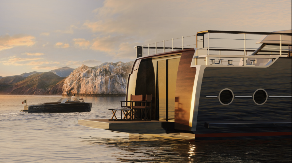 Une terrasse sur l’eau s’étend directement au-dessus de la mer, invitant à la détente au bord de l’océan. Pour ceux qui privilégient un style de vie plus extraverti, une configuration en plein air avec un pont arrière surbaissé le transforme en une scène dédiée à la vie côtière.