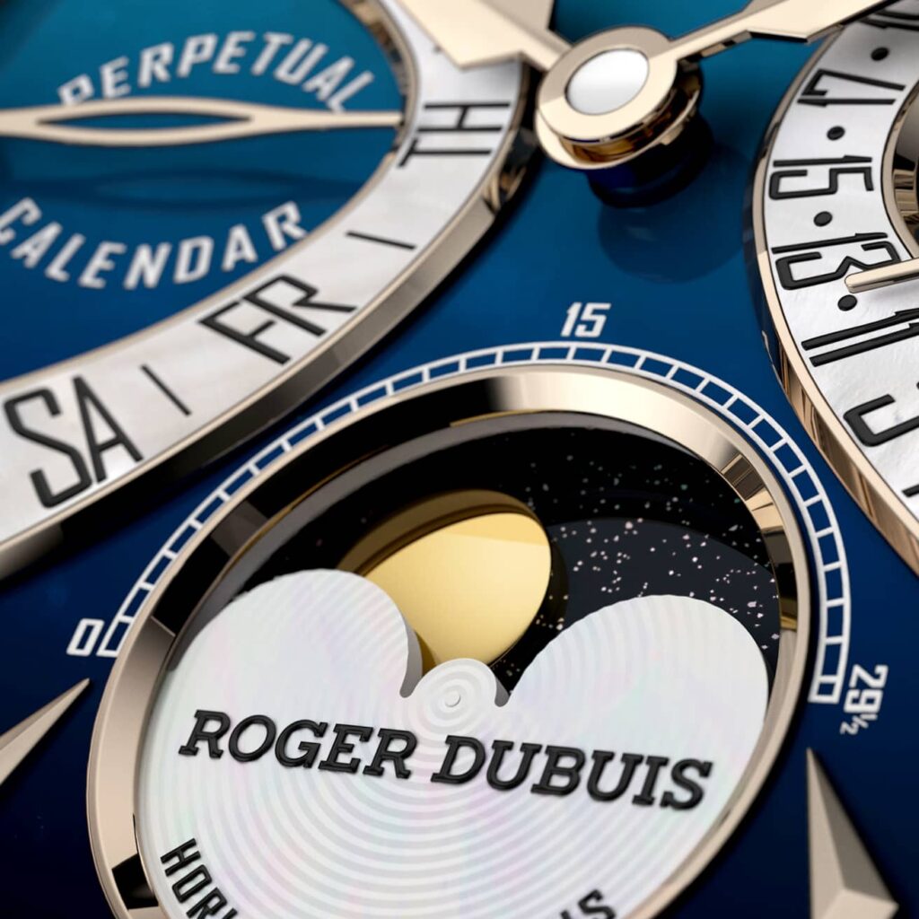 Au cœur de Hommage La Placide se trouve le RD1472, un calibre réinventé répondant aux plus hauts standards de l’excellence genevoise et unissant un Calendrier Perpétuel à un affichage Biretrograde, tout en honorant la passion de M. Roger Dubuis.