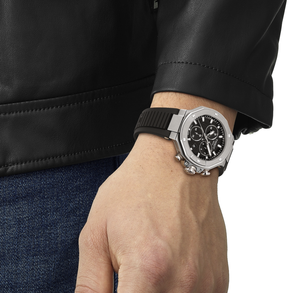 Animé par un mouvement chronographe à quartz, le modèle met l’accent sur la réactivité et la praticité. L’échelle tachymétrique intégrée renforce son lien avec le chronométrage des sports motocyclistes, tandis que les compteurs contrastés et les détails an gulaires de la boîte reflètent les caractéristiques visuelles des engins de MotoGP. Un bracelet en silicone noir assure la durabilité et le confort de la montre, qui peut ainsi être portée au quotidien tout en conservant un esprit sportif authentique.