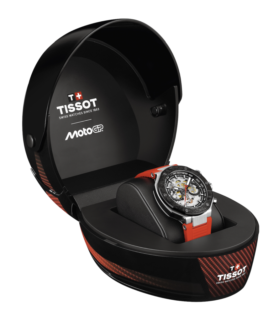 Le lien entre la marque et les courses de moto débute en 2001 lorsque Tissot est nommé chronométreur officiel du MotoGP. En 2003, elle prend une nouvelle dimension avec la création des premières montres MotoGP. Aujourd’hui encore, cette longue collaboration donne vie à des créations qui allient innovation technique et esthétique audacieuse, et capturent l’adrénaline, la mécanique et l’émotion du sport.